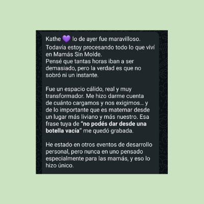 Si algo de todo esto resonó contigo no podés perderte el encuentro presencial Mamás sin Molde el sábado 16/08 de 15 a 20:30 en Montevideo.